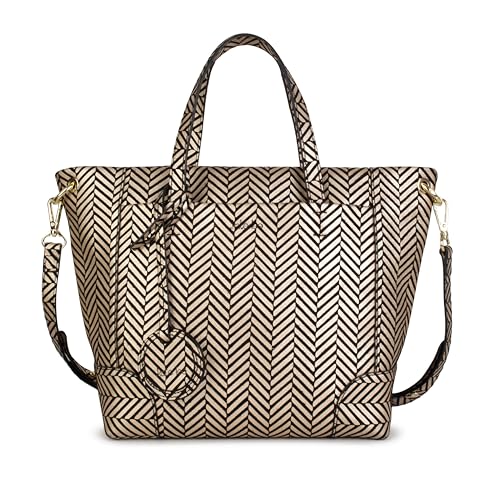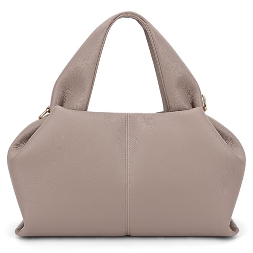 Vadderad läderväska för kvinnor stor axel handväska resa arbetsväska, 4-kaki, Medium