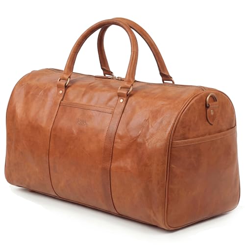 SID & VAIN Resväska Holdall Yale Zip stor duffelväska äkta läder 53 cm weekender duffel läderväska kvinnor och män, Brun konjak, Unisex-Adults, Reseduffel
