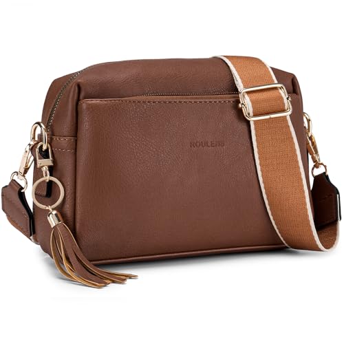 Roulens liten axelremsväska med 3 blixtlåsfack, vegansk läderväska för kvinnor, telefonväska, axelväska med justerbar och avtagbar bred rem, S, Samtida