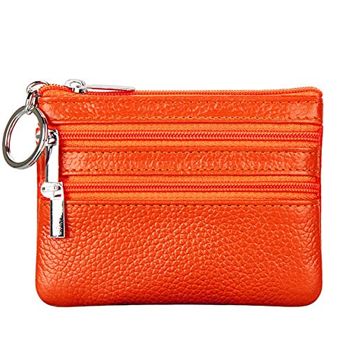 Äkta läderväska för kvinnor med nyckelring, Orange, En storlek, Myntväska