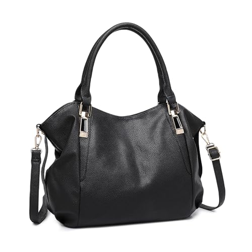 Miss Lulu - Stor damväska med justerbar axelrem, vattentät PU-läderväska, axelväska för dam för daglig användning och resor, Svart, Utility