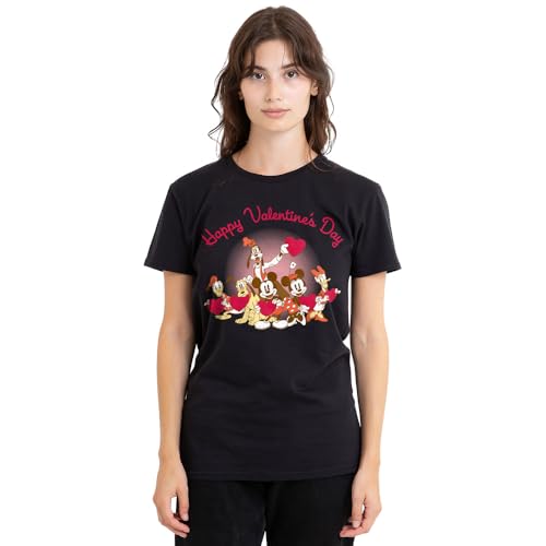 mandarin creative ltd Musse Pigg Friends Happy Valentine's Day Ladies T-Shirt, svart, XL, svart, XL
