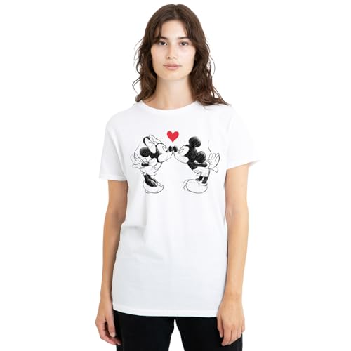 mandarin creative ltd Musse Pigg och Minnie Sketch Kiss Valentine's Day Ladies T-tröja, vit, vit, XXL dam, Vit, XXL