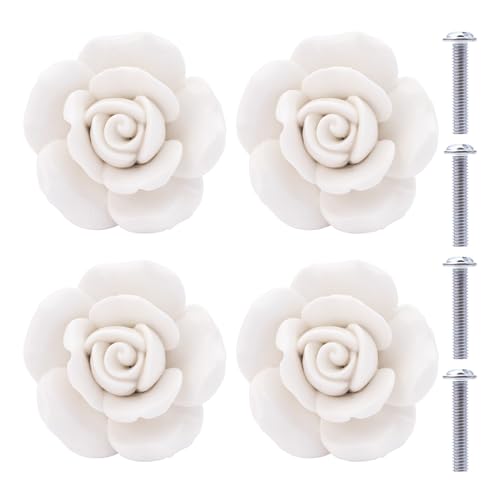 NAKUPENDA keramikknoppar 4 stycken keramiska rosor blommor knopp lådknoppar porslin ros möbelknappar för lådor skåp skåpdörrar (vit)