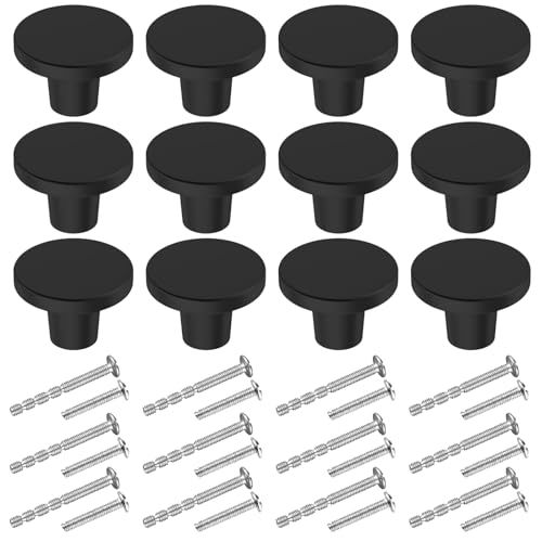 BIGLUFU 12 st lådknoppar i mässing, runda svarta köksskåpsknoppar, byrålådor med skruvar - 20 x 25 mm