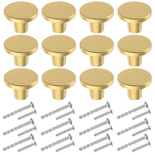 BIGLUFU 12 st lådknoppar i mässing, runda köksskåpsknoppar, byrålådar, draghandtag för byrå med skruvar - 20 x 25 mm (guld)