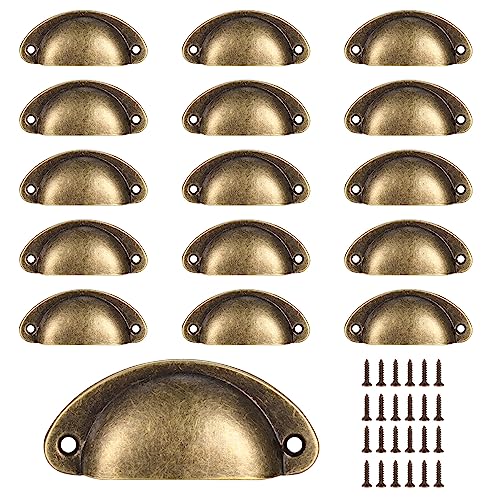 VARHHUXHA Mussla handtag vintage, 16 stycken handtag skåp, lådhandtag med skruvar, möbelhandtag, köksskåp, handtag, lådknoppar brons
