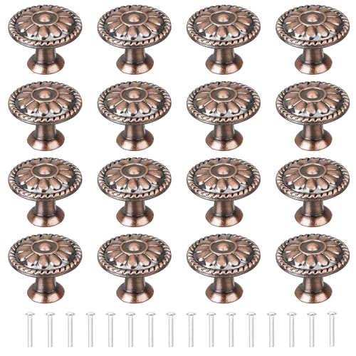 YEYIT Kopparröda skåphandtag, 16 st runda lådknoppar, svampformade handtag med ett hål, 30 mm, aluminiumlegering och blommönster, inkluderar skruvar