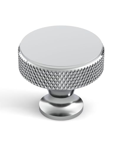 Coinkoly 10-pack polerade krom skåpknoppar enkelt hål räfflade lådknoppar skåp dörrknoppar för garderober UK0006