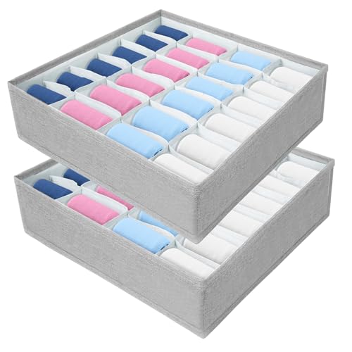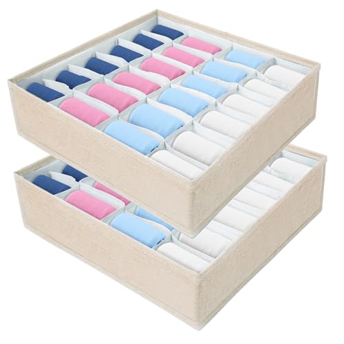 AiQInu Lådor organisatör för strumpor och underkläder, 2 stycken 24 celler vikbara lådor organisationssystem garderob låda fördelare för underkläder, strumpor, slipsar, bälte