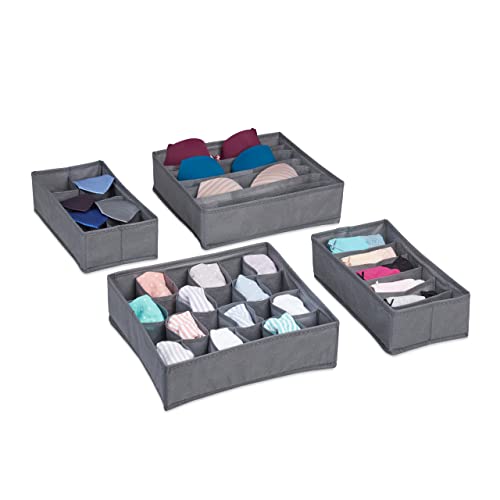 Relaxdays Underkläder organisatör, 4 st. lådor organisationssystem garderob, för strumpor, behå, trosor, mörkgrå