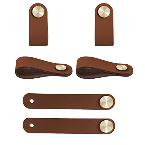 Kacrilidi 6 stycken läderhandtag, möbelknappar, bruna möbelhandtag, läder, skåphandtag, lådhandtag, skåpknoppar, möbelknoppar med skruvar, för skåp, garderob, lådor, kök
