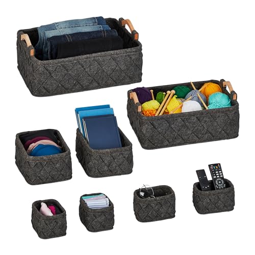Relaxdays Skåpförvaring, 8 delar, 4 storlekar, filt, lådor organisationssystem garderob, förvaringslådor, mörkgrå