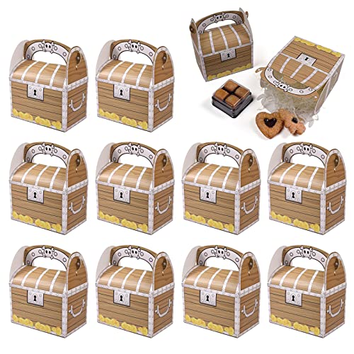 VCCAHIJK Piratpartilåda 10 stycken piratpartybox skattkista pirater treat boxes konfetti box godis godis lådor godis lådor med handtag för fest födelsedagsfest barn festgåvor