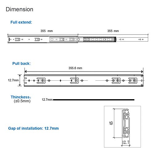 AOLISHENG fullutdrag lådskenor 350 mm - sidomonterade lådskena med full utdrag, 45 kg bärkraft - glidskena för hemmet, kök & kontorsskåp - 1 par (2 st)