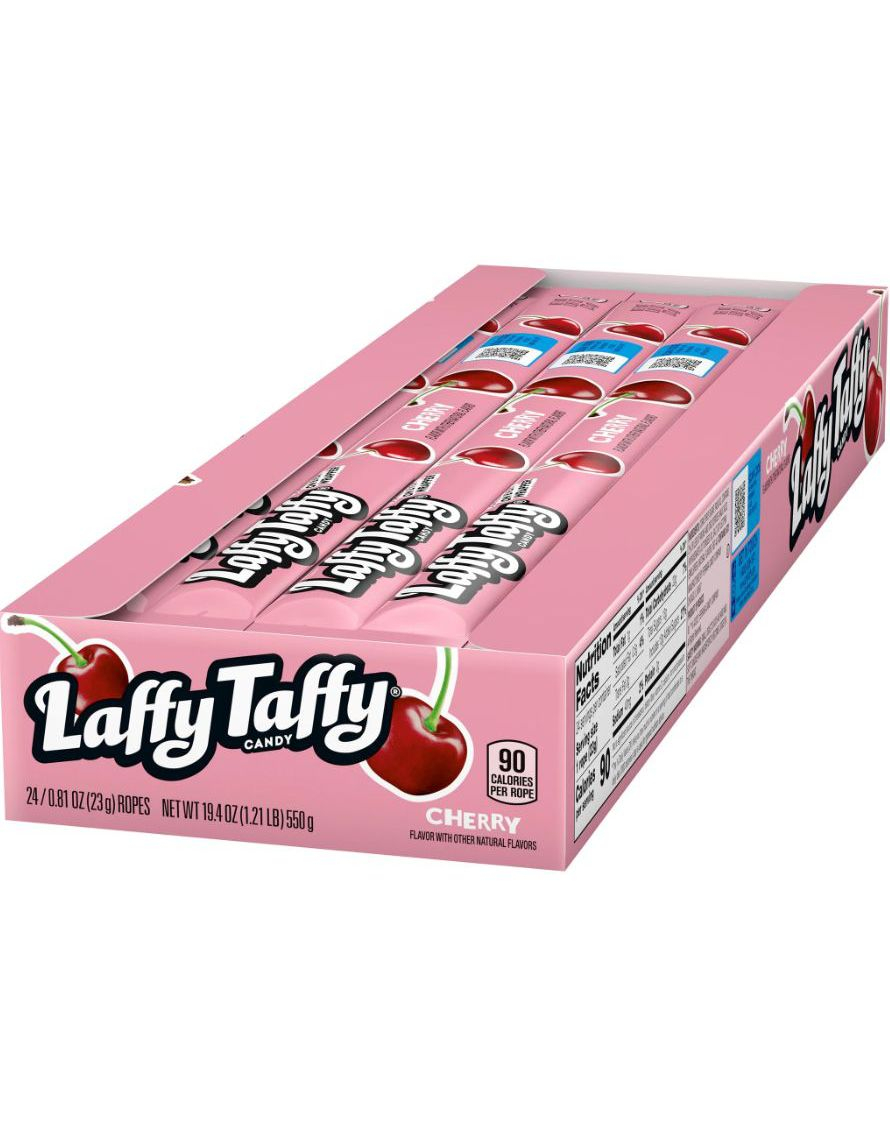 24 st. Wonka Laffy Taffy Cherry - Karamellstång med Körsbärssmak - Hel Låda 551 gram (Import från USA)