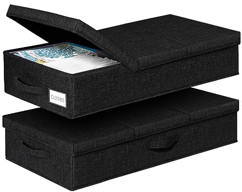 ikan Förvaringslåda under sängen med lock 2-pack, 12 cm smal låg profil klädförvaring för hem, filt och leksaksförvaringslåda under soffa och barnsäng, med robust botten/sidor, hopfällbart tjockt