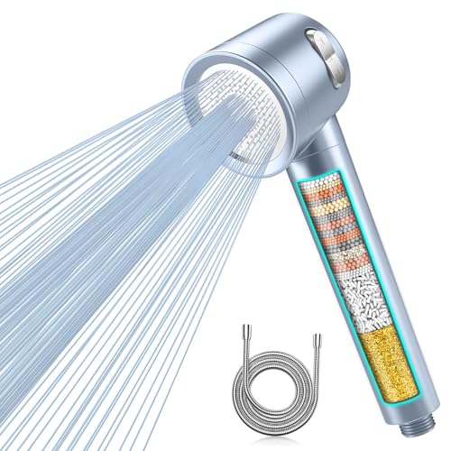 MEKO högtryck handdusch med 15-lager filtersystem, 1,5 m slang och 3 stråltyper för vattenbesparing och borttagning av resterande klor
