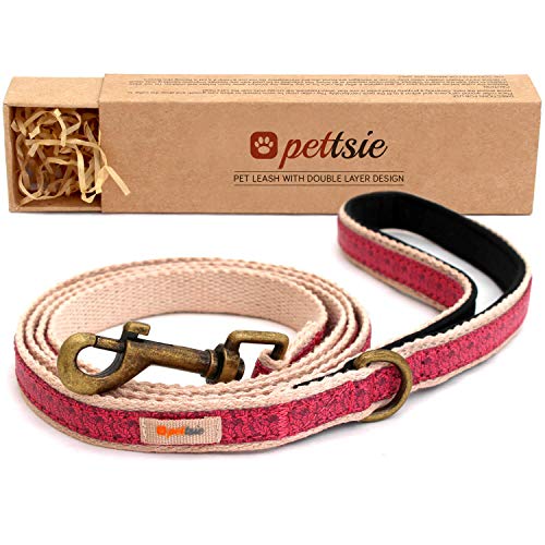 Pettsie Hundkoppel tillverkat av robust hållbar hampa, 15 cm lång, dubbla lager för säkerhet och vadderat handtag för extra komfort och kontroll, presentförpackning ingår (S, rosa)