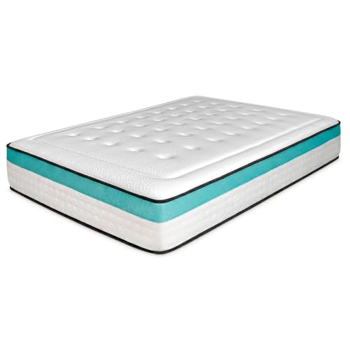 amuéblate online - Minnesmadrass, 135 x 190 cm, Flow Nature i flera lager, höjd 24 cm, medium/hög fasthet, anti-kvalsterbehandling, antibakteriell och allergivänlig - Tillverkad i Spanien
