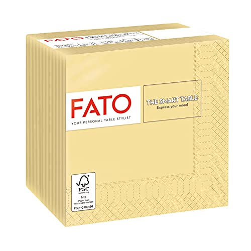 Fato, Engångs pappersservetter Perfekt för snacks och cocktails, Förpackning med 100 Servetter vikta i 1/4 och med 2 lager, Storlek 24x24 cm, 100% ren cellulosa, FSC-certifierad, Champagne