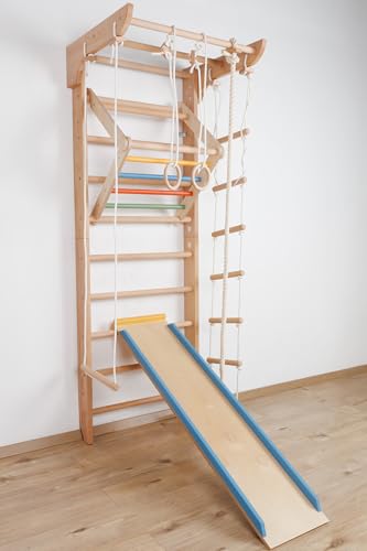 KindSport Gymnastikvägg klätterställning för barngym barn-3-220-färg sportutrustning i trä klätterväggstavar med bar Fitness - Certifikat - EU-lager