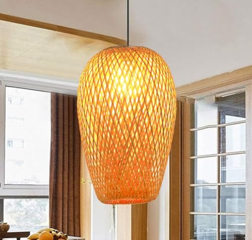Handvävd bambu pendellampa dubbla lager lampskärm bambu vävd ihålig taklampa ljuskrona taklampa för bar, kaffe, matsal, hotell, stil 2