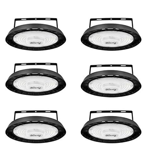Blivrig 6 st 100 W LED verkstad UFO 6 500K kall vit med stativ, 1 0 000 LM industriell lampa pendellampa IP65 vattentät, 144 LED hög bär, takbelysning, för lager, fabrik