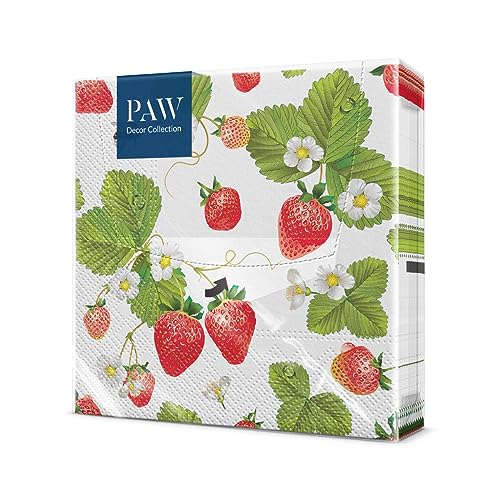 PAW – servetter 3-lager (33 x 33 cm) I 20 stycken I perfekt för födelsedagar, fester, bröllop, nattvard och fester I pappersservetter färgglada – frukt, jordgubbar I jordgubbar med bär