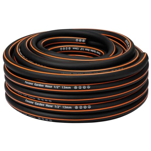 FEVONE Trädgårdsslang 50 m slangrör för trädgård 13 mm (1/2 tum) 4 lager 25 bar hög belastning bärbar utomhus kompressor slangledning flexibel robust spännbart böjskydd svart/orange