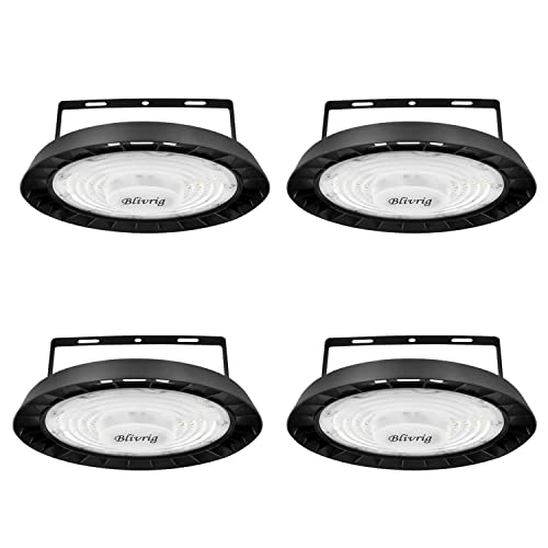 Blivrig 4 st 100 W LED verkstad UFO 6 500K kall vit med stativ, 1 0000 LM industriell lampa pendellampa IP65 vattentät, 144 LED hög bär, takbelysning, för lager, fabrik