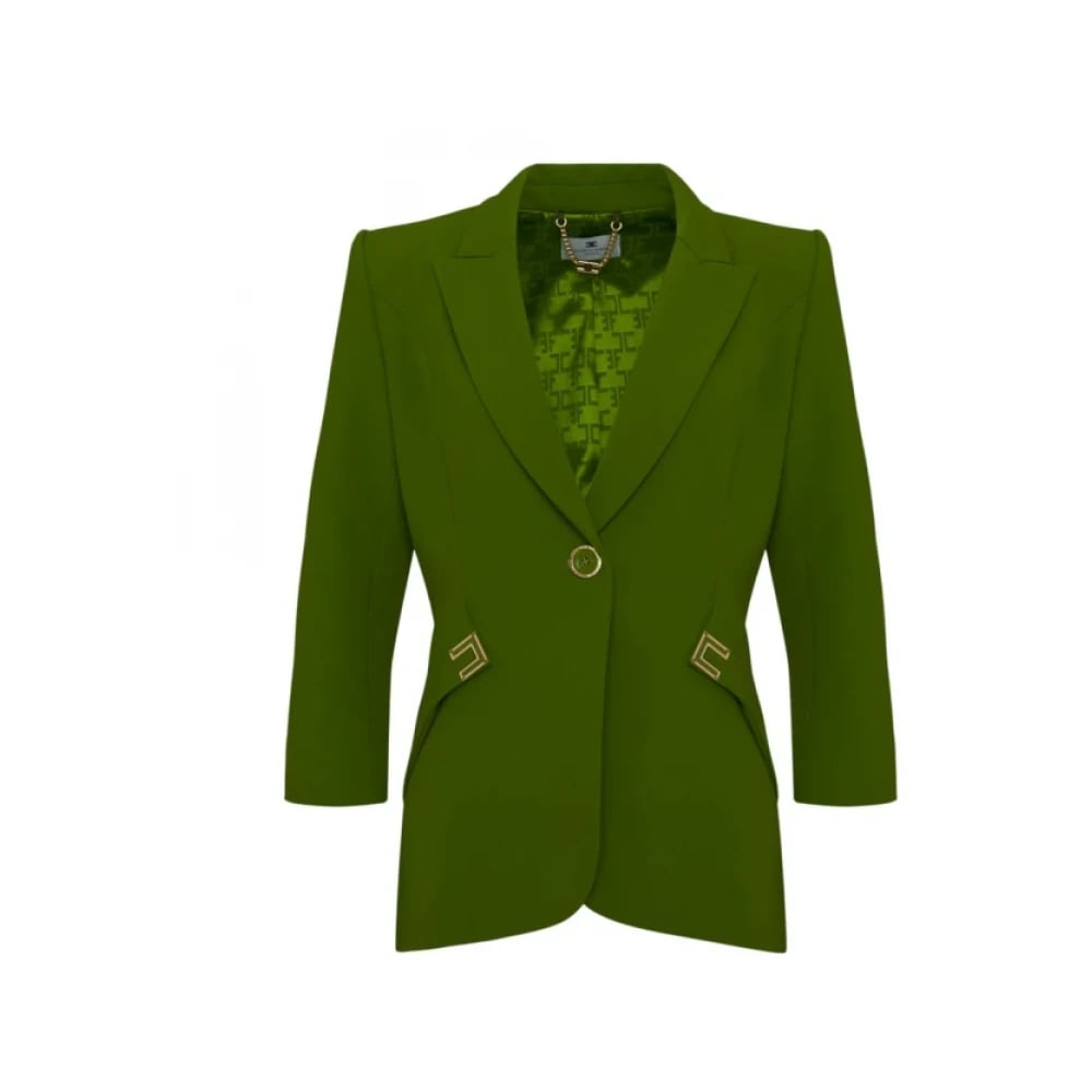 Elisabetta Franchi, Jackor , Dam, S, Polyester, Jacka i dubbelt lager stretch crêpe-tyg med logodetaljer