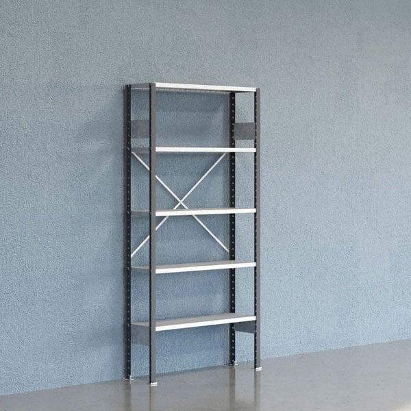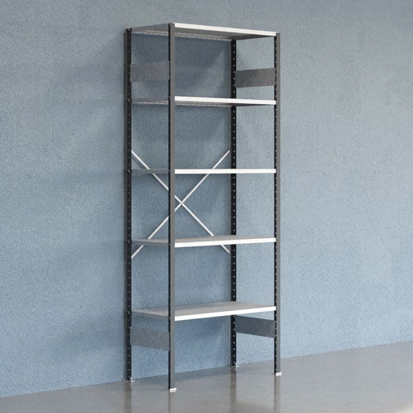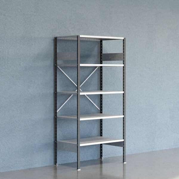 Lagerhylla V06 startsektion 2500x600mm Galvaniserad hylla Öppen gavel