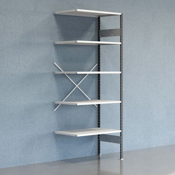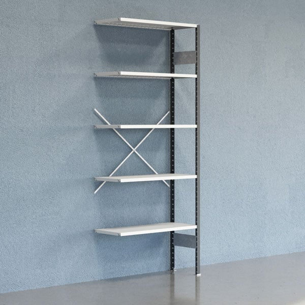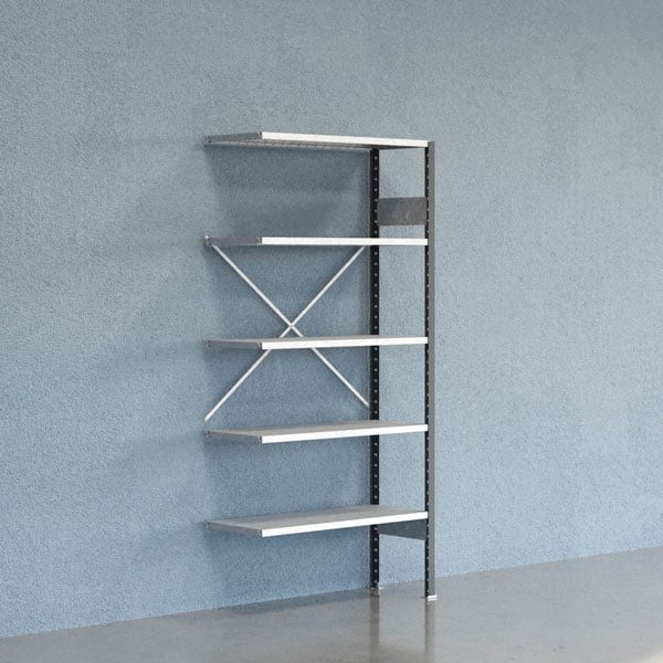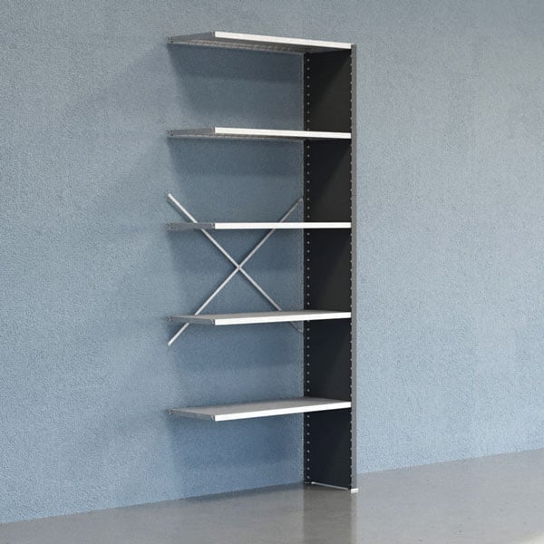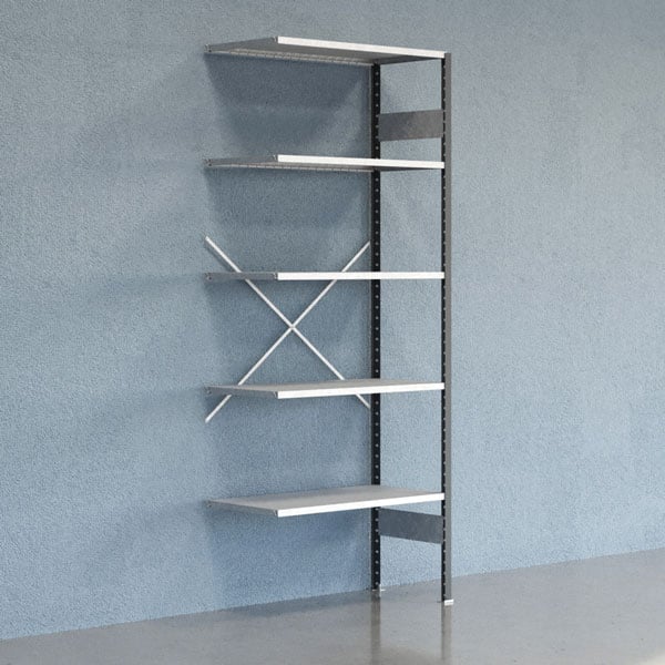 Lagerhylla V06 påbyggnadssektion 2500x600mm Galvaniserad hylla Tät gavel