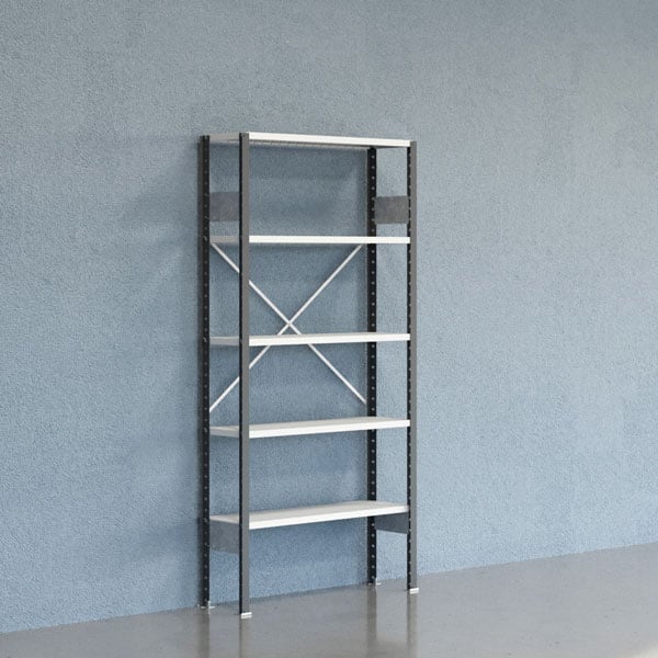 Startsektion Boltless lagerhylla, X-rygg 2500x1000x300mm 150 kg/hylla