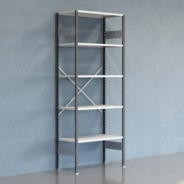 Startsektion Boltless lagerhylla, X-rygg 2500x1000x600mm 150 kg/hylla