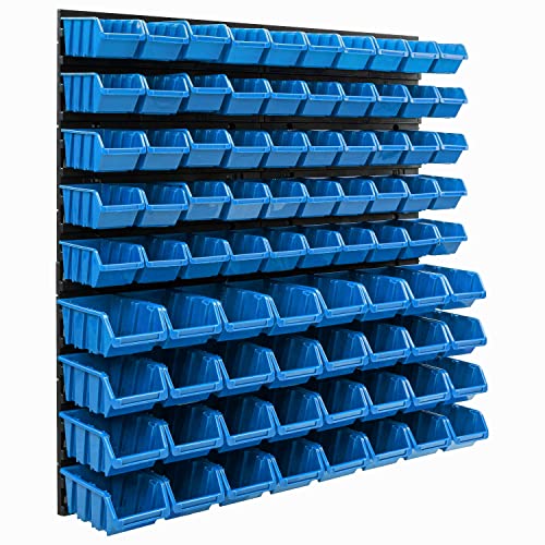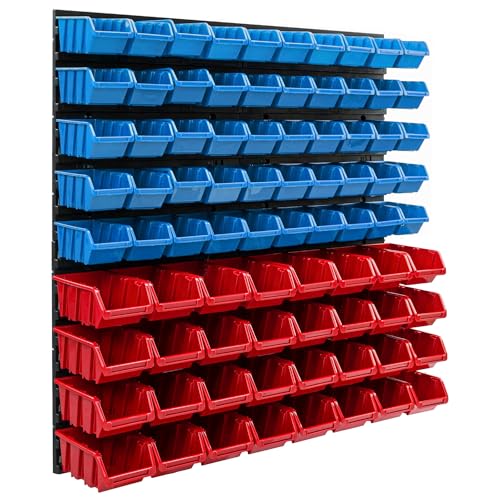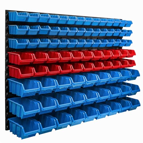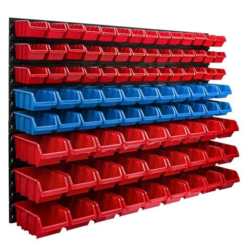 Lagersystem verkstadshylla | 117 x 78 cm | 66 st. Box | Vägghylla med stapelbara lådor – väggplattor extra stark bulkhylla, vertygshålvägg, förvaringshylla, garage, hylla (3)