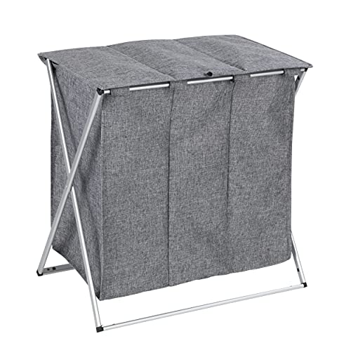 WENKO Trio Top grå melerad, stabil tvättkorg med lock och bärhandtag, gott om lagringsutrymme med 118 l och tre fack, platsbesparande vikbar (B x H x D): 57 x 57 x 38 cm
