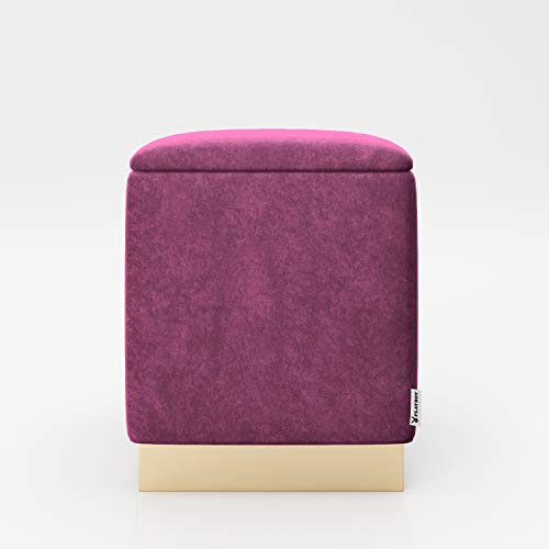 PLAYBOY Pouf med lagringsutrymme och guldfot, avtagbart lock, sammetstyg i ljusblå, retrodesign, sittpall, tvättbehållare, ottoman, sammetsöverdrag i lila, fot av metall i guld