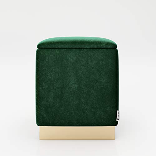PLAYBOY Pouf med lagringsutrymme och guldfot, avtagbart lock, sammetstyg i ljusblå, retrodesign, sittpall, tvättbehållare, ottoman, sammetsöverdrag i grönt, fot av metall i guld