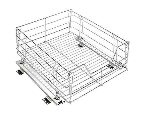 Maximex Skåputdrag Maxi, förvaringskorg med skensystem för extra lagringsutrymme, förvaring och organisation i hela hushållet, 50 x 23 x 40 cm, förkromat stål, glänsande silver, 5911207, Large