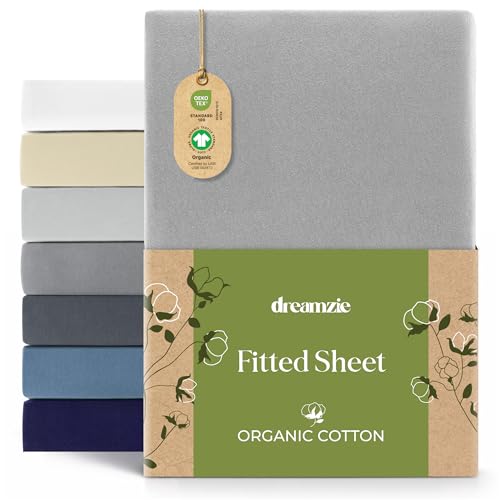 Dreamzie Lakan 180x200 cm - 200x200 cm, 100% ekologisk bomullströja, Madrasshöjd upp till 32 cm, Allergivänlig, Oeko-Tex, Grå
