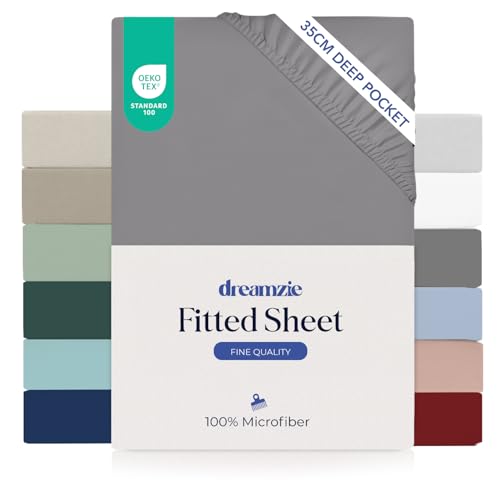 Dreamzie Lakan 200x200 Keps 35 cm för tjock madrass - 100% mikrofiber - Grå, Certifierad utan kemiska produkter (Oeko TEX), Lakan med full resår
