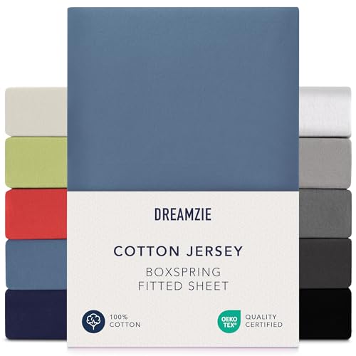 Dreamzie Boxspring Lakan 180x200 cm - 200x200 cm, 100% bomullströja, Madrasshöjd upp till 37 cm, Allergivänlig, Oeko-Tex, Blå