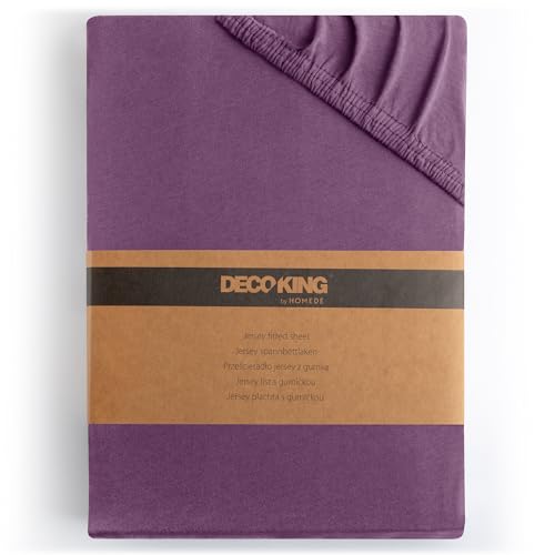 DecoKing Dra-på-lakan 180x200-200x200 cm 100% kammad Bomull Jersey Mjuk Spännlakan 180x200cm - 200x200cm Lila Amber