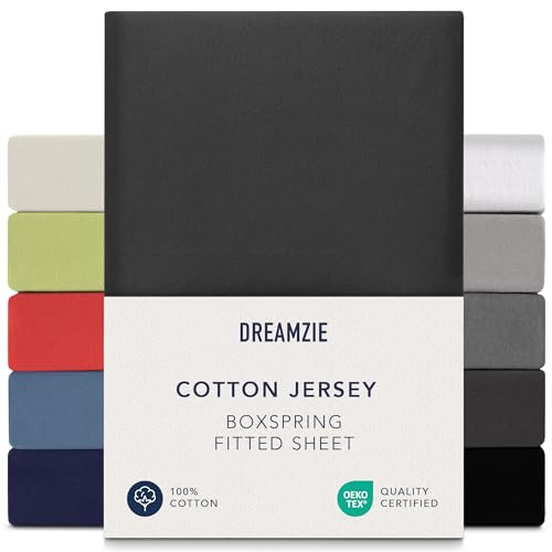 Dreamzie Boxspring Lakan 180x200 cm - 200x200 cm, 100% bomullströja, Madrasshöjd Upp till 37 cm, Allergivänlig, Oeko-Tex, Svart