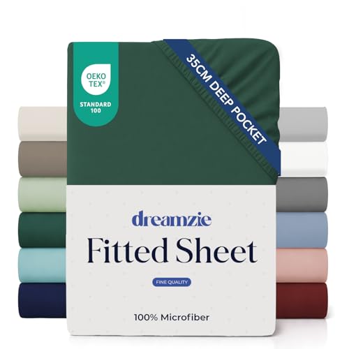 Dreamzie Lakan 200x200 Keps 35 cm för tjock madrass - 100% mikrofiber - Bensingrön, certifierad kemikaliefri (Oeko TEX), Lakan med full resår