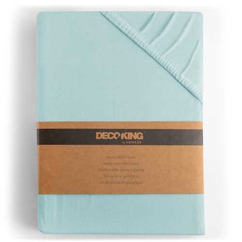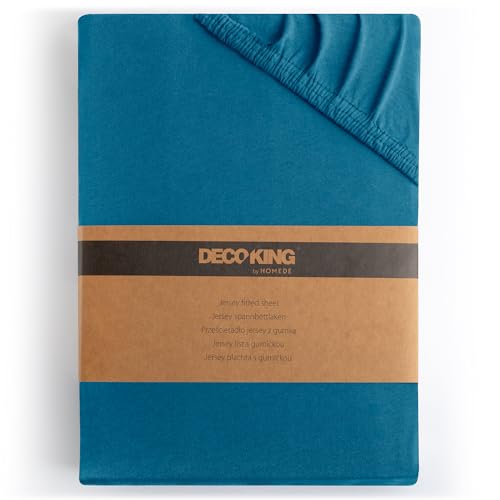 DecoKing Dra-på-lakan 180x200-200x200 cm 100% kammad Bomull Jersey Mjuk Spännlakan 180x200cm - 200x200cm Cyan Amber
