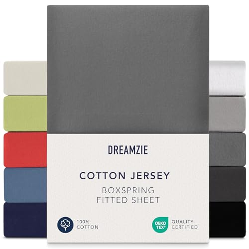 Dreamzie Boxspring Lakan 180x200 cm - 200x200 cm, 100% bomullströja, Madrasshöjd upp till 37 cm, Allergivänlig, Oeko-Tex, Grå