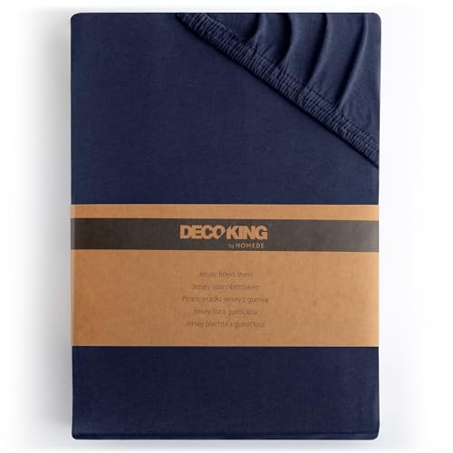 DecoKing Dra-på-lakan 180x200-200x200 cm 100% kammad Bomull Jersey Mjuk Spännlakan 180x200cm - 200x200cm Mörkblå Amber